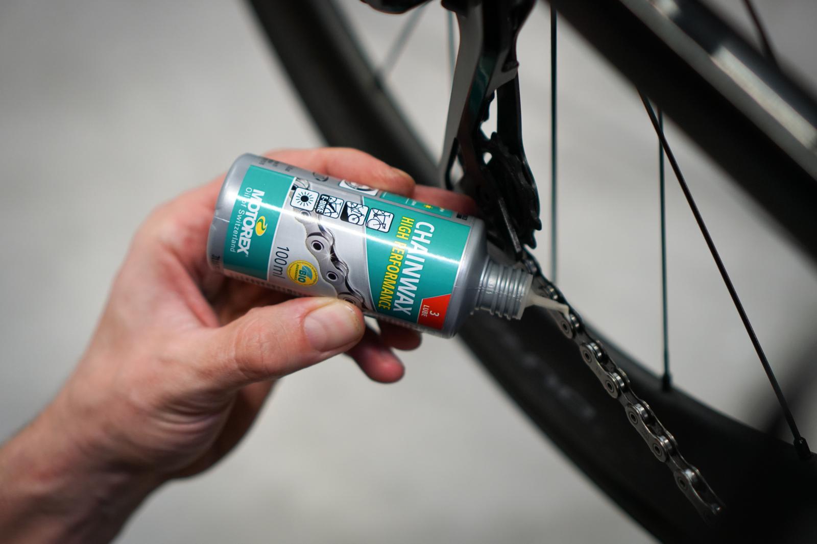 MOTOREX CHAINWAX basiert auf einer speziell entwickelten Wachs-Wasser-Emulsionstechnologie ohne Lösungsmittel. Die neuartige Zusammensetzung bildet einen trockenen Wachsfilm und verhindert somit die Staub- und Schmutzanhaftung auf ein Minimum. Das CHAINWAX ist biologisch abbaubar, reduziert Verschleiss und kann bei allen Arten von Fahrradketten eingesetzt werden.